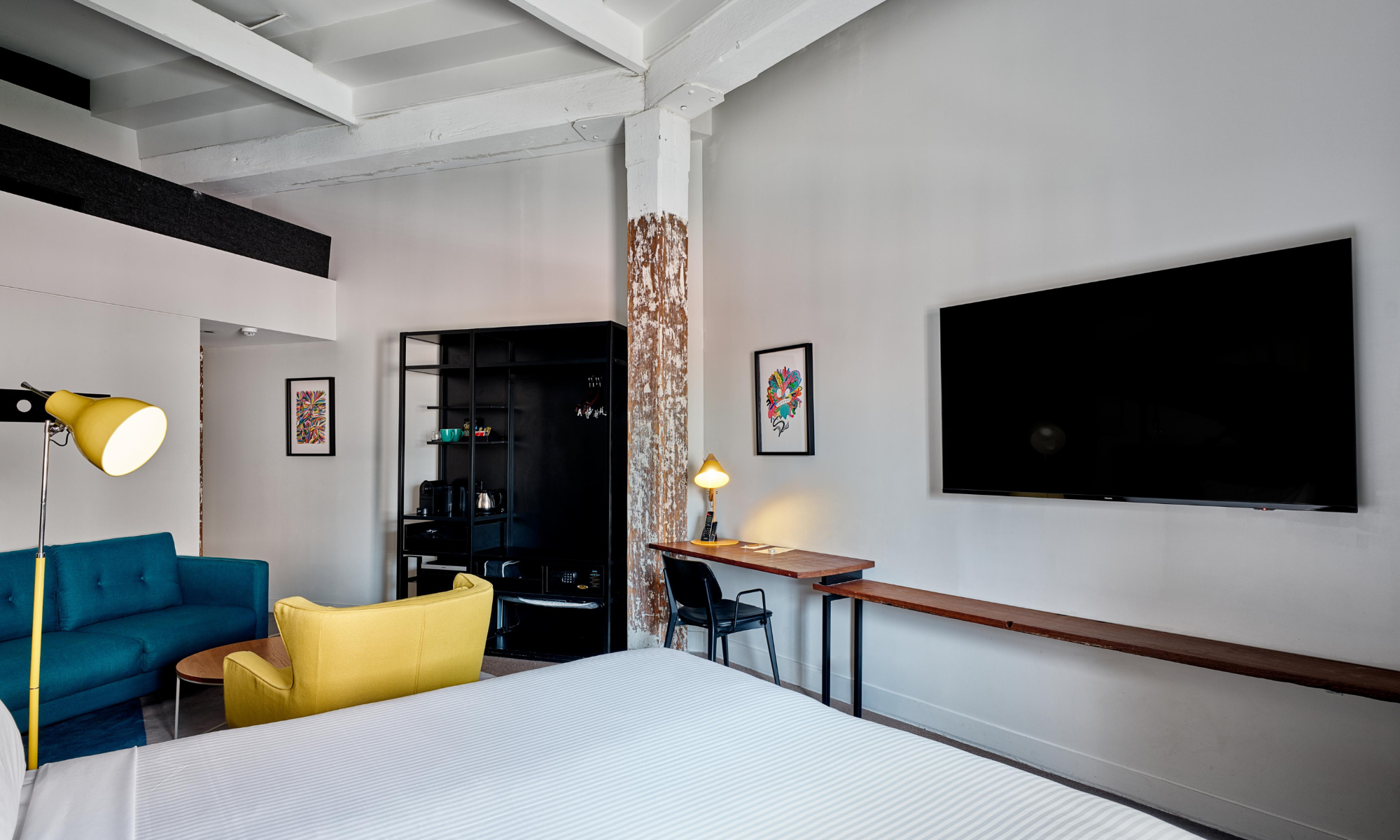 Our Junior Suite combines luxury with pastoral elegance, offering a plush King bed and a relaxing lounge area. Enjoy signature Woolstore amenities, including a walk-in rain shower and a lavish bath for unwinding after a long day.
